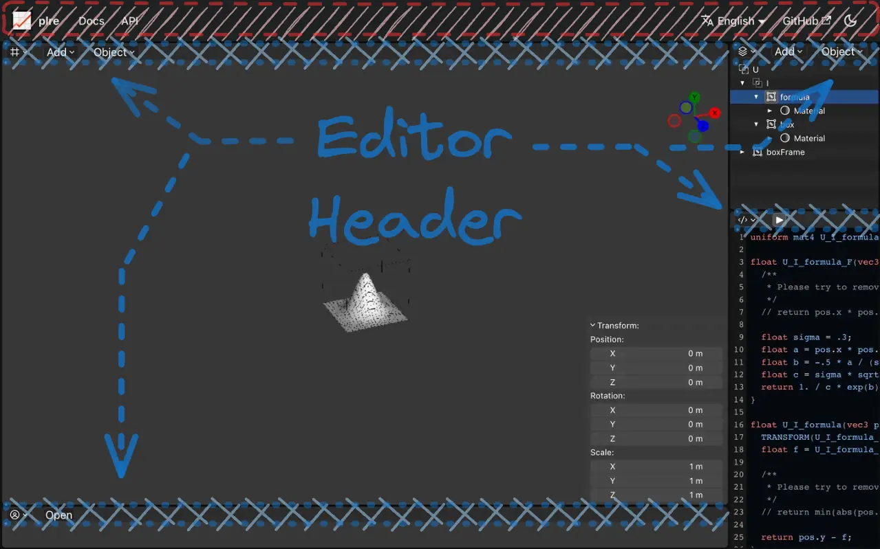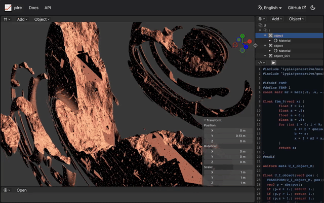 plre provides a unique and intuitive interface designed on the foundation of Blender's UI/UX, ensuring a seamless experience for those familiar with the latter. The consistent UI is available across all major platforms, be it mobile or desktop, enabling real-time collaboration between users via WebRTC.